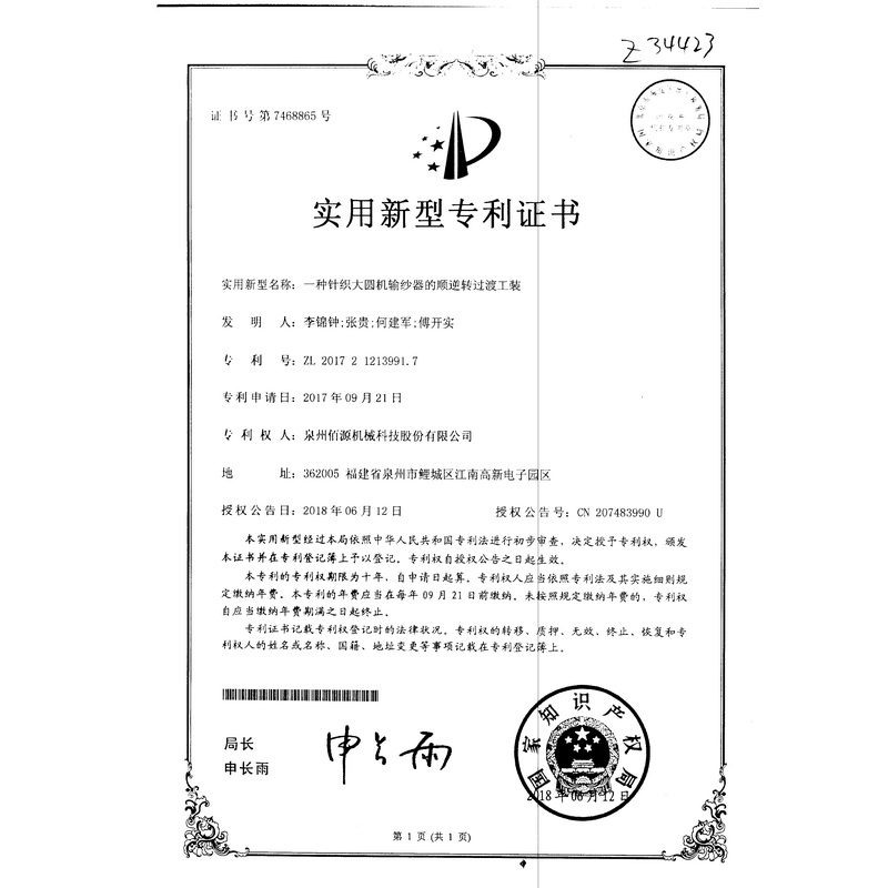 新型-一種針織大圓機輸紗器的順逆轉過渡工裝