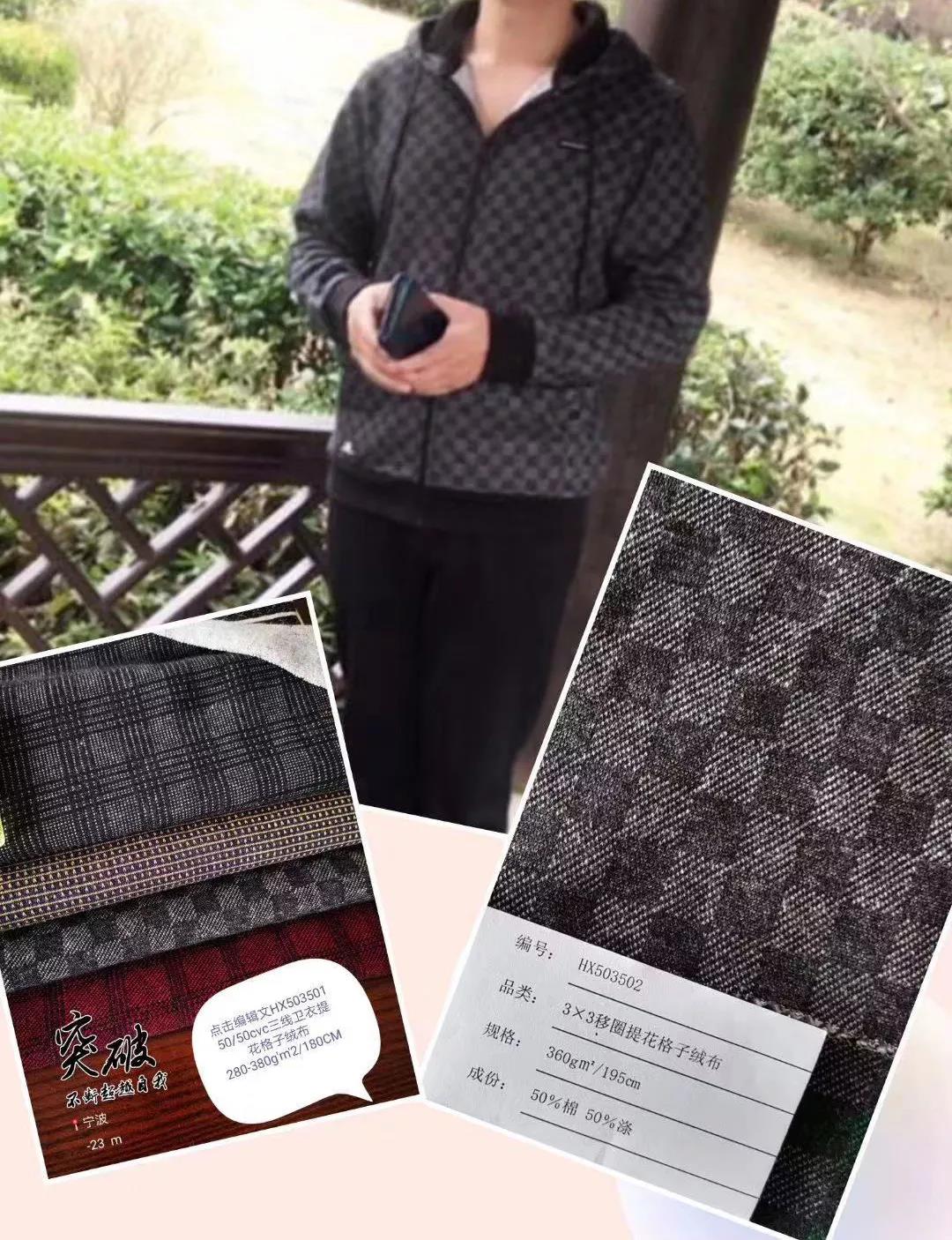 衛(wèi)衣布對于衛(wèi)衣整體質量優(yōu)劣來講很重要,是挑選衛(wèi)衣時的一個重要參考標準。我們來看看佰源提花移圈衛(wèi)衣機織出的布樣及樣衣上身效果: